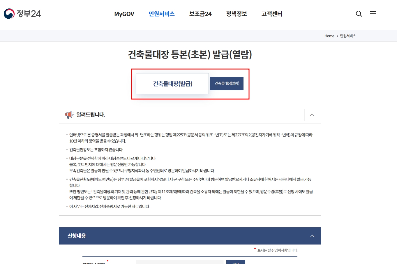 그러니 건축물 대장은 부동산 거래 시 히 확인해야 하는 서류라고 할 수 있습니다. 온라인을 통해 건축물대장을 쉽고 간편하게 무료로 발급을 할 수 있습니다.