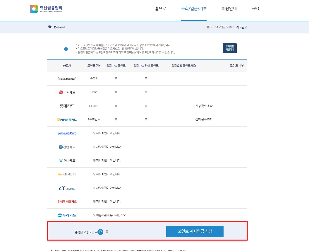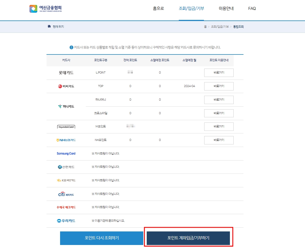 카드 포인트 통합조회 및 계좌입금 신청방법